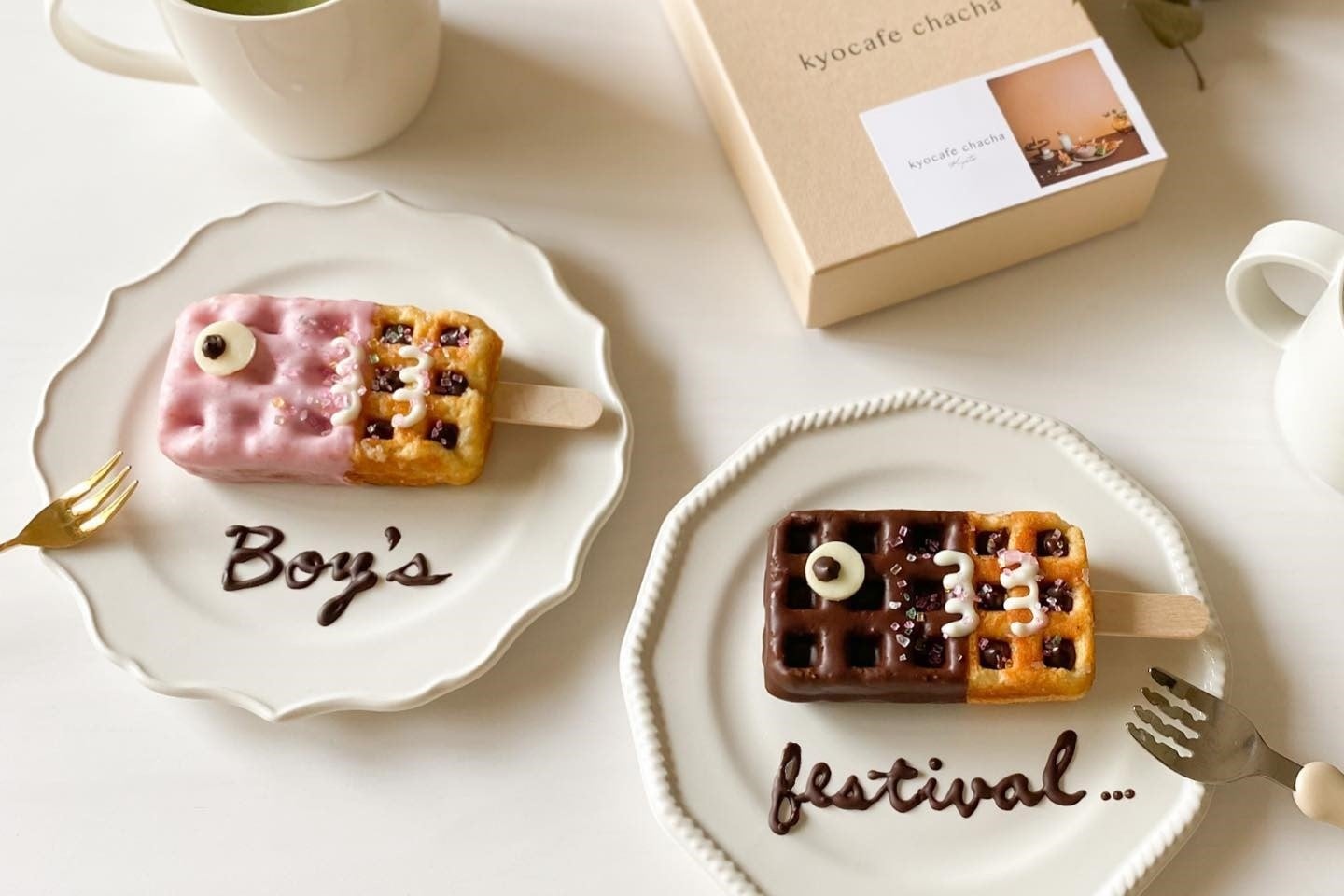 ジャパンリゾート株式会社(本社:京都府京都市/代表取締役:松下美耶)が運営するワッフル専門店「kyocafe chacha (キョウカフェ チャチャ)」は、2023年4月21日(金)~2023年5月5日(金)の期間中、『こどもの日限定 お絵かきデコ京ワッフルBOX 』を販売いたします。たっぷりチョコレートをディップした京ワッフルとチョコペンなどのデコレーションセットの詰め合わせ。自分だけのオリジナル京ワッフルで、楽しく節句のお祝いを。新しい節句のお祝いスタイルをお楽しみいただけます。節句のお祝いにはもちろん、作って楽しいギフトとしても◎。オリジナルの京ワッフルで笑顔いっぱいのお時間をお過ごしくださいませ。
