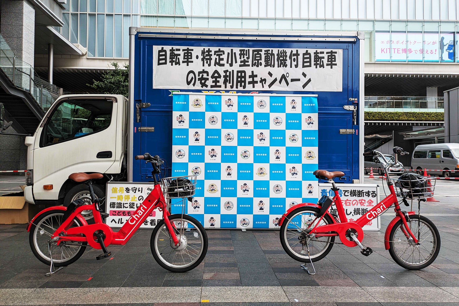 シェアサイクルサービス『チャリチャリ』、JR博多駅前で「自転車・特定小型原動機付自転車の安全キャンペーン」の開催に協力