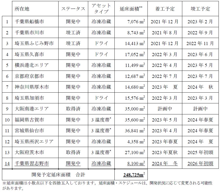 当社は、EC 市場の拡大による物流施設需要の高まりや、2030 年のフロン規制に向けた冷凍冷蔵倉庫の設備投資、冷凍食品の消費増加による冷凍冷蔵倉庫の需要拡大などを受け、物流施設開発をおこなっております。