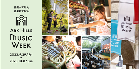 サートを開催し、街自体が一つのコンサートホールと化します。「オークラウロ」や「七弦琴」など普段なかなか聴く機会がない楽器の演奏会の他、赤坂インターシティAIRではコンサートの他、ストリートピアノが設置されるなど、奏者としてARK Hills Music Weekに参加することも可能です。心地良い秋空の下、街の至る所から響きわたる音楽に耳を傾けながら、アークヒルズエリアの芸術散策を楽しんでみてはいかがでしょうか。