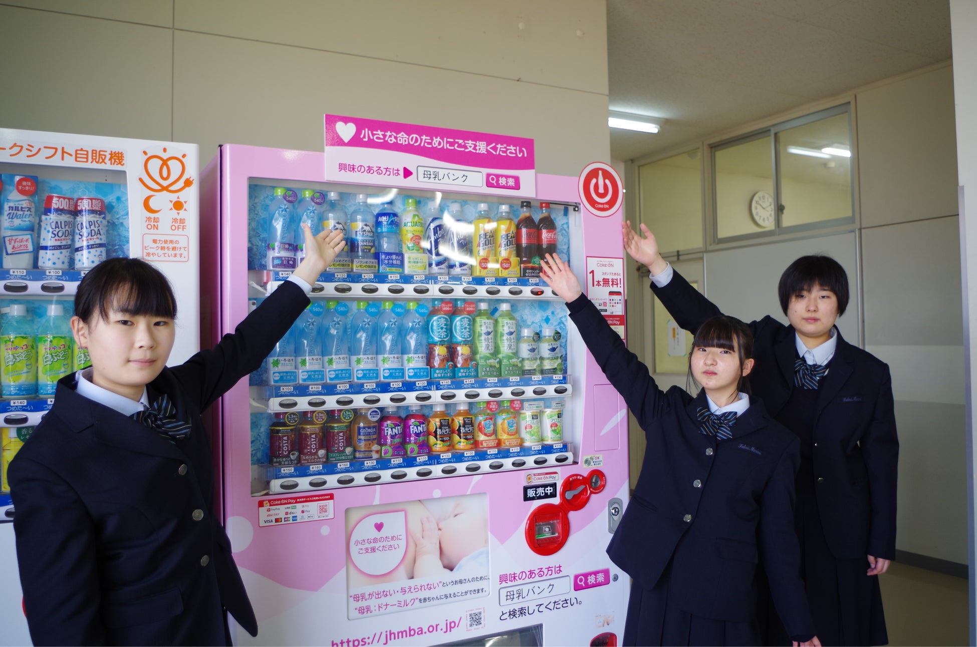 本校の新校舎増築に伴い、2022年9月末に校内に母乳バンクの寄付型自動販売機が導入されました。福祉・看護および家庭に関する科目を中心に学習する「ライフサポート系列」に所属する私達は、自動販売機導入をきっかけに母乳バンクへ関心を寄せるようになり、総合的な探究の時間において母乳バンクに関する探究活動を開始しました。