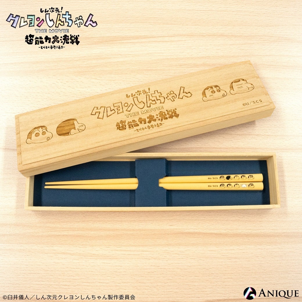しんちゃんの豊かな表情とシロにフォーカスした、桐箱入りの【若狭塗箸】です。