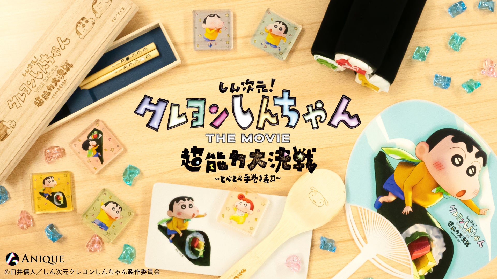 Anique株式会社(本社:東京都渋谷区、代表取締役:中村太一)は、同社が運営するサービス「Aniqueショップ」にて、映画『しん次元!クレヨンしんちゃんTHE MOVIE 超能力大決戦 ~とべとべ手巻き寿司~』描き下ろし限定グッズを8月4日(金)より予約販売開始いたします。