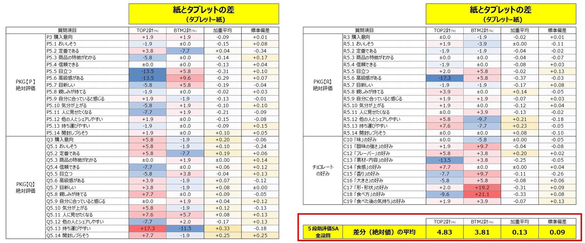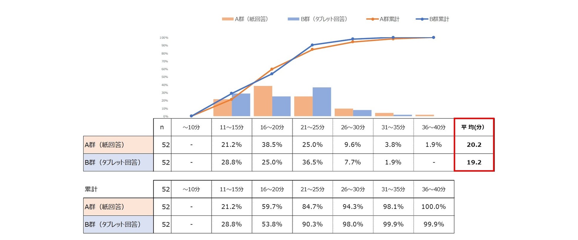 タブレット回答は、紙回答と比べて極端な差や偏りは見られず、また、システムでの回答制御や、回答端末の機能を利用することで、よりデータの正確性を高め、内容の濃いデータが得られる結果となりました。
