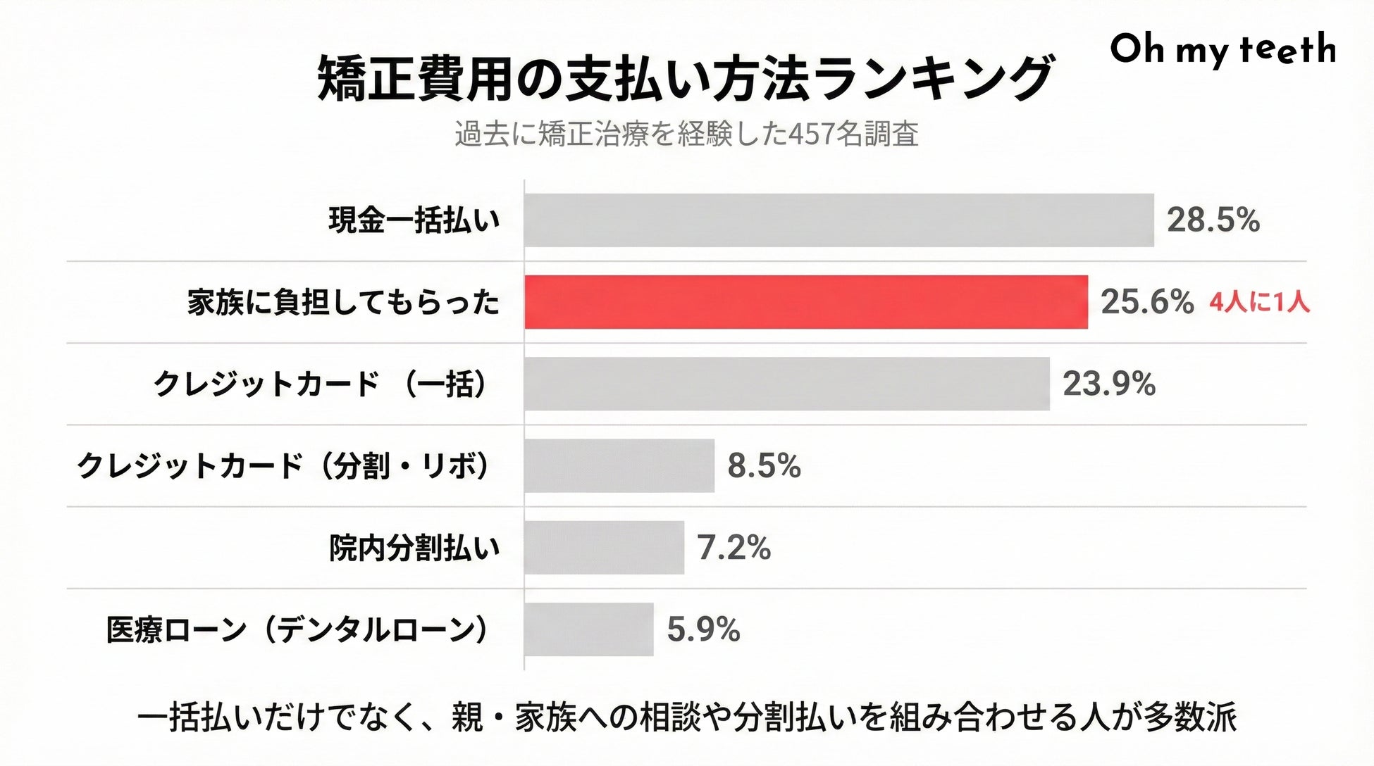・【2025年の歯列矯正の支払方法調査】4人に1人は親・家族が費用を負担|Oh my teethニュースページ