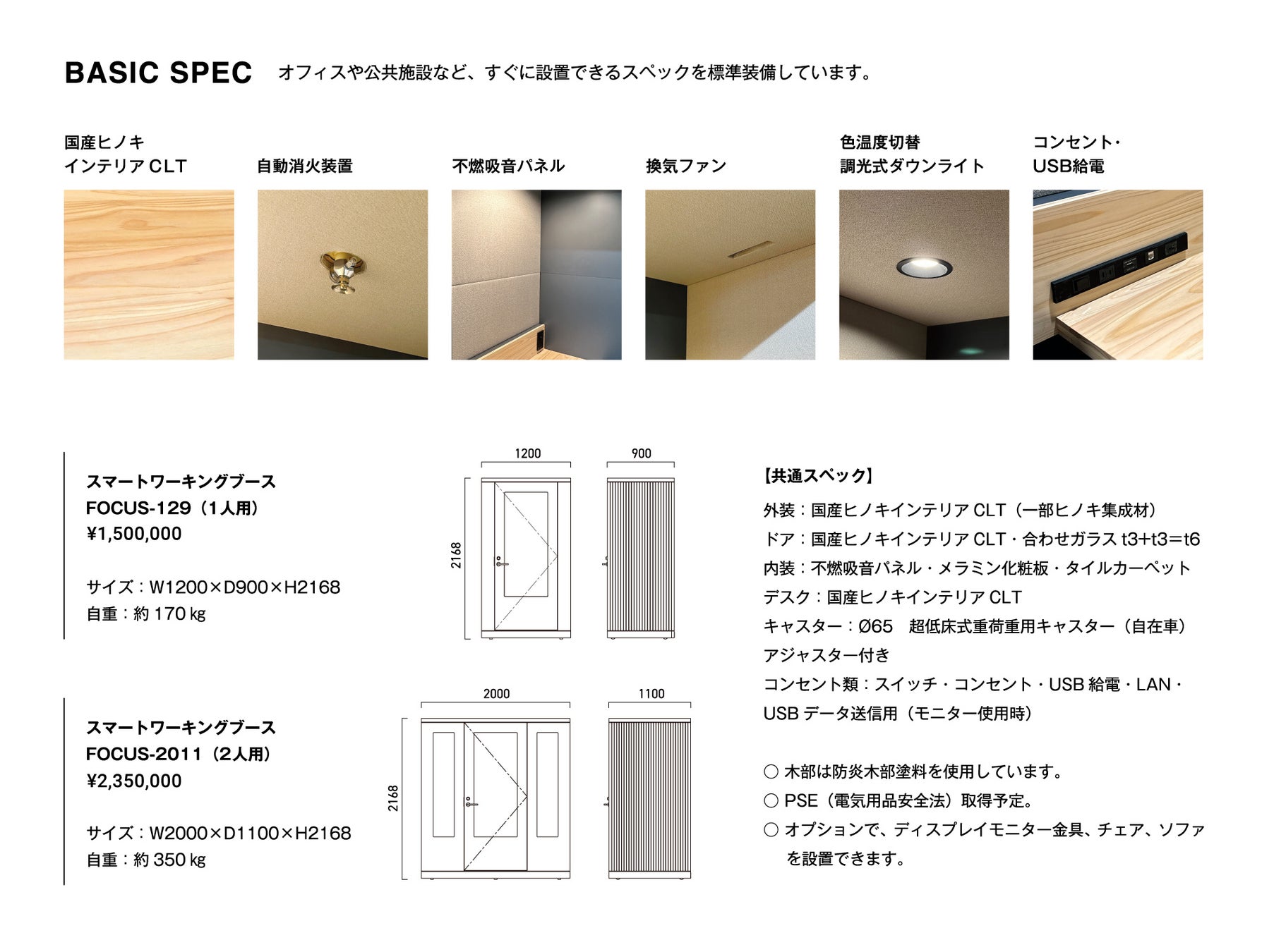 FOCUSは、国産ヒノキインテリアCLT(*)を活用したスマートワーキングブースです。