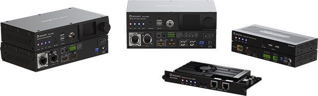 複雑な4K映像と音声を8msec未満の超低遅延で伝送可能なDante AV Ultraに対応。IEEE 1588 PTPによる単一クロック同期により、それぞれの映像と音声は正確に同期され、異なる解像度やリフレッシュレートの映像ソースも瞬時に切替可能です。弊社のDAV-01シリーズ、DAV-02シリーズとも完全に互換しており、組み合わせることで12G-SDIやUSB-C(DP Alt Mode)からの映像・音声を受信・デコードすることが可能です。
