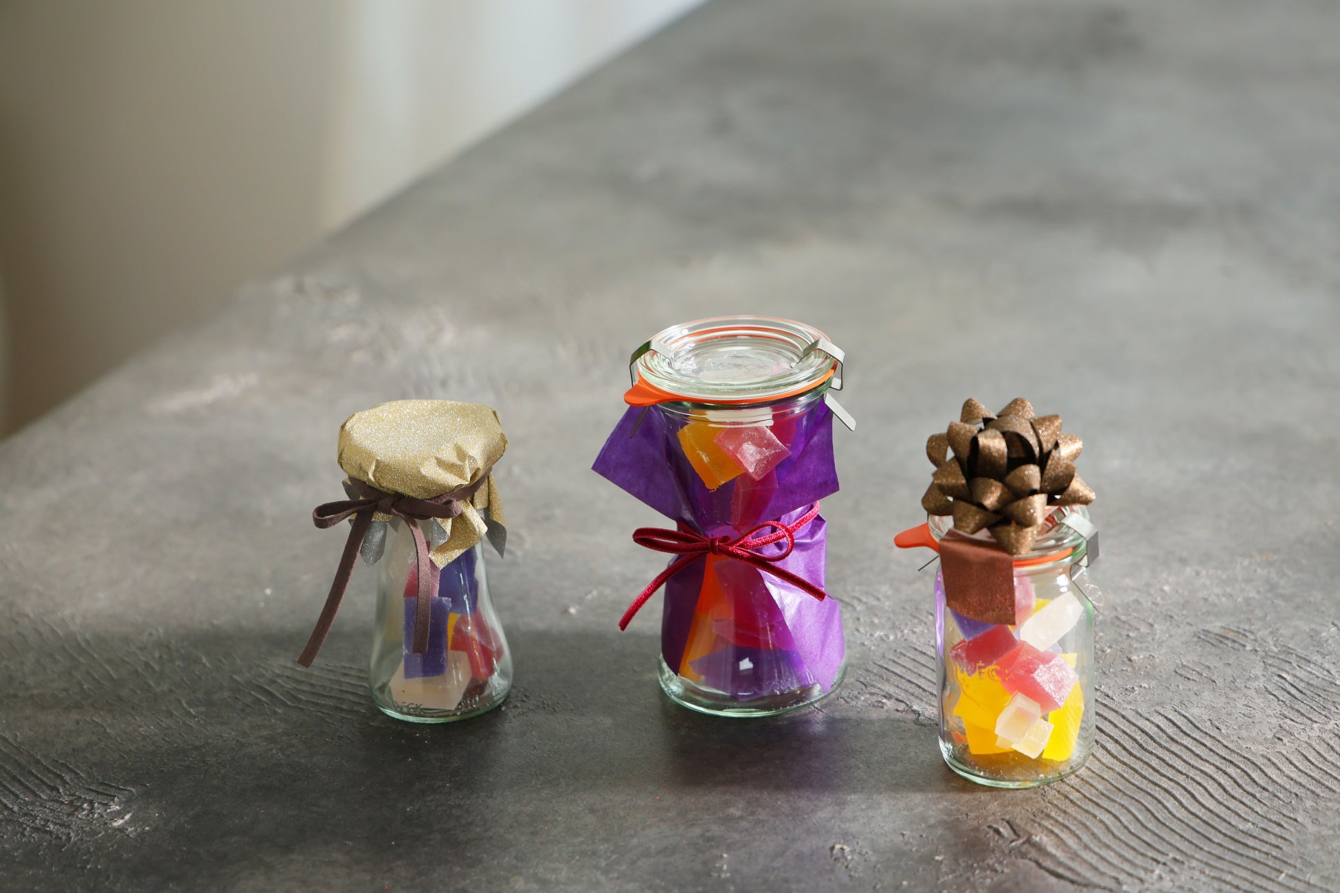 色とりどりの琥珀糖がWECKキャニスターとともにキラキラと輝き、そのままバレンタインギフトとしてもうれしいレシピとなっています。ぜひご覧ください。