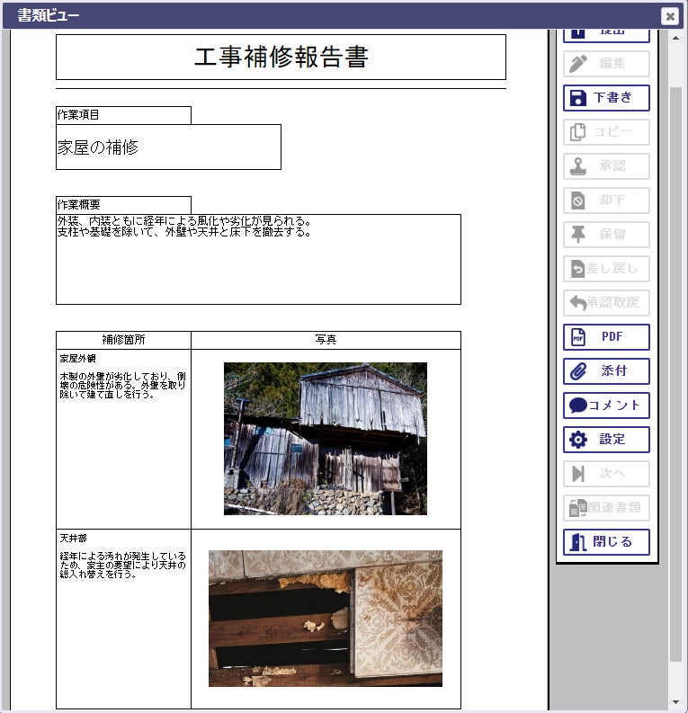 ★現場写真と報告、図面と指示、代金と領収書など、添付ファイルでは表現しにくかった情報も書類内容と画像情報が一目で分かるように!