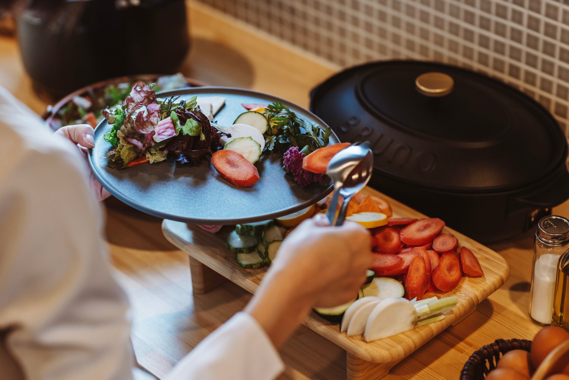朝食付きプランでは、畑から収穫してきたばかりの旬の野菜を、生、焼、蒸の調理方法で、パンなどと共にお召し上がりいただけます。お気に入りの野菜、食べ方をぜひ見つけてみてください。