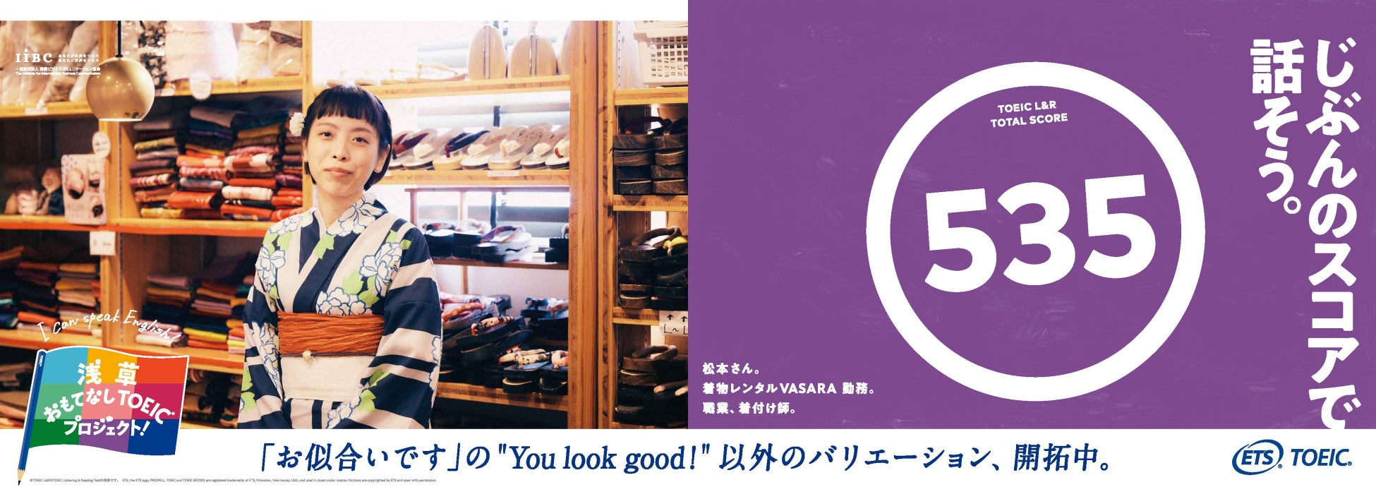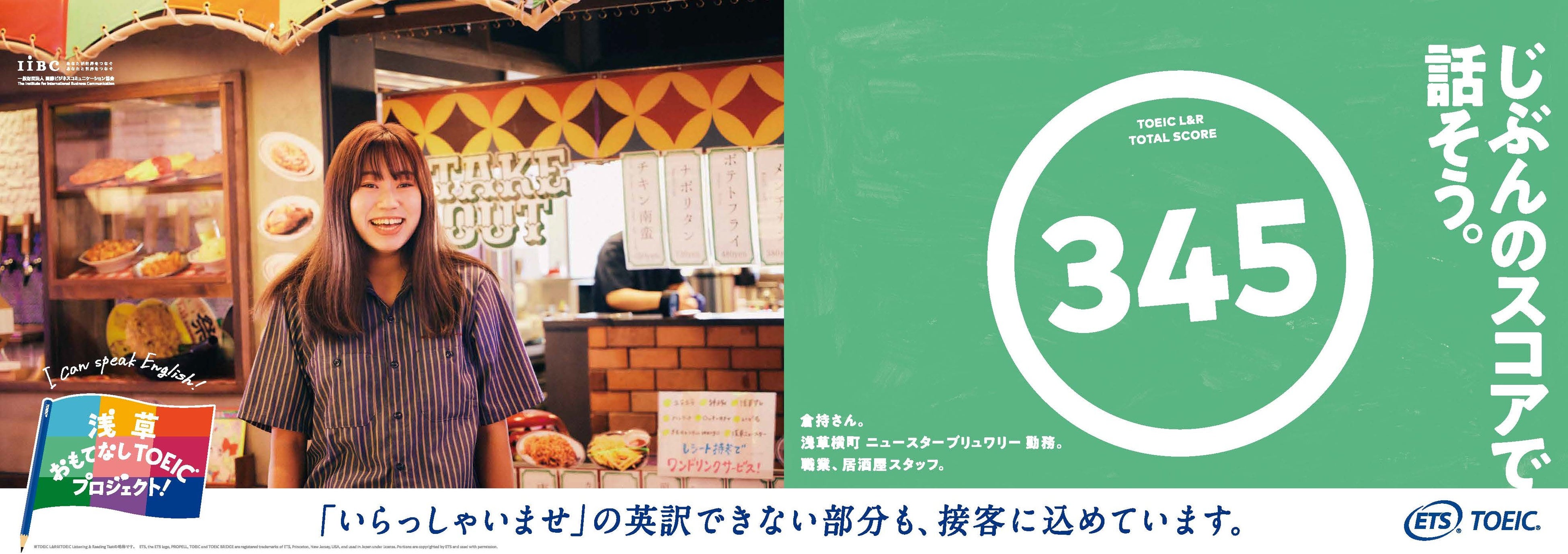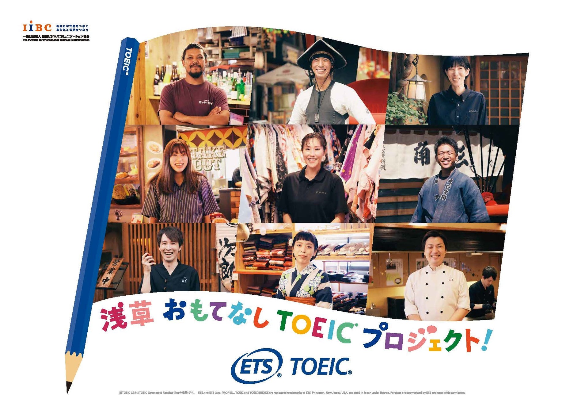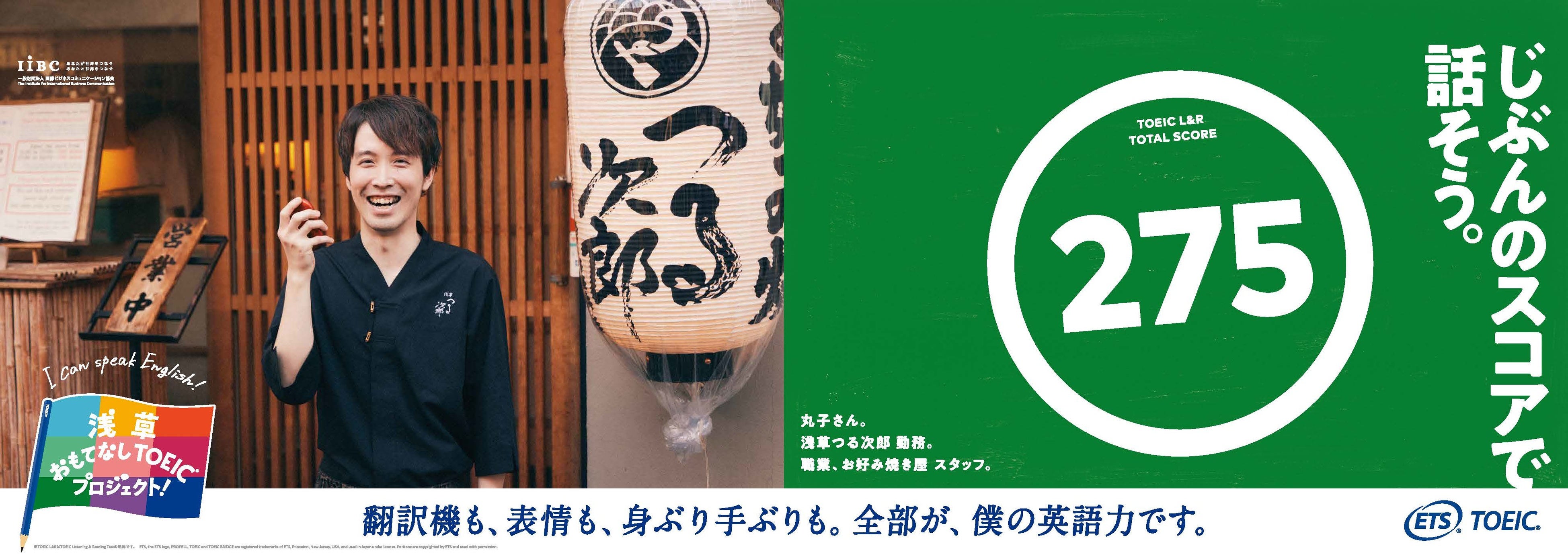 世界で英語を話す人は約15億人。そのうち母語が英語でないノンネイティブスピーカーは約11億人いると言われています。(*³)日本を訪れる外国のお客様も例外ではないはず。だから、おもてなしの現場においては、必ずしもネイティブスピーカーのような流暢な英語が話せなくても、コミュニケーションは十分できると私たちは思います。このプロジェクトでは、浅草の人力車の俥夫や着物レンタル店の着付け師、またネパール出身の居酒屋スタッフなど、日頃から「等身大の英語」を使っておもてなしに励む9名の方々がTOEIC Listening & Reading Testを受験。それぞれの「今の英語力」を測定した結果とともに、日々英語でのおもてなしに向き合うポジティブなメッセージを広告に載せて発信します。この9名が実際にテストを受験する様子や、それぞれのおもてなしの現場である浅草の街中でグラフィック撮影に挑戦するシーン、そしてこのプロジェクトを通して変化した英語への想いなども動画で公開。