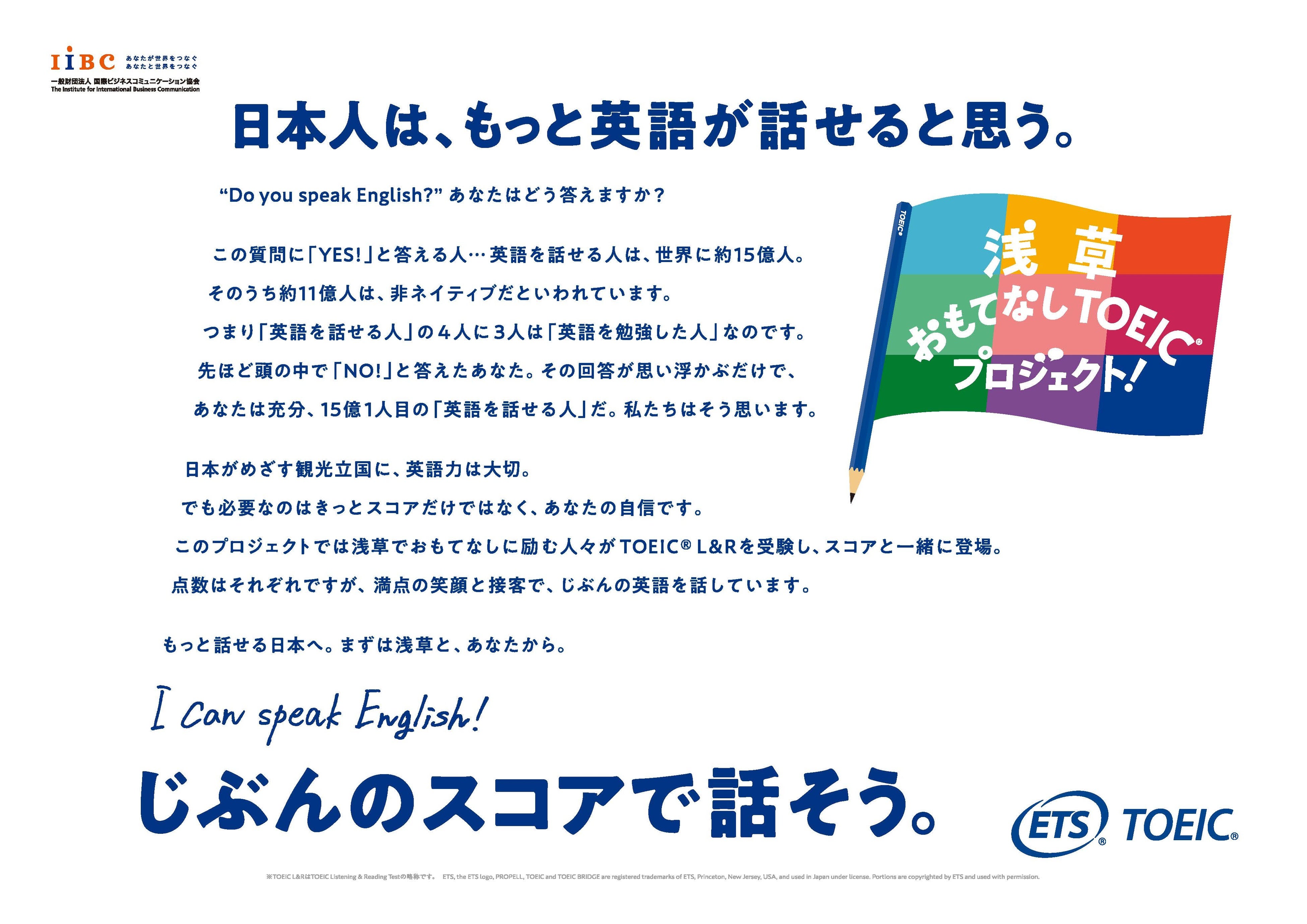 「必要なのは、スコアだけではなく自信。まずは今の自分の英語力を知り、等身大の英語を使うことに慣れて、次の目標に向かって学んで欲しい。」IIBCは、英語を学ぶすべての人と共に「もっと話せる日本」を目指します。