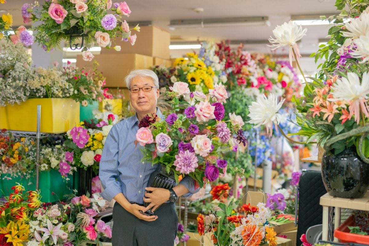下原さん「造花といえど何年も使えば痛んでくるので、新しい花を買い足したり、ダメになった花は捨てなければいけません。取引先に満足してもらえるよう、常に工夫は凝らしています」