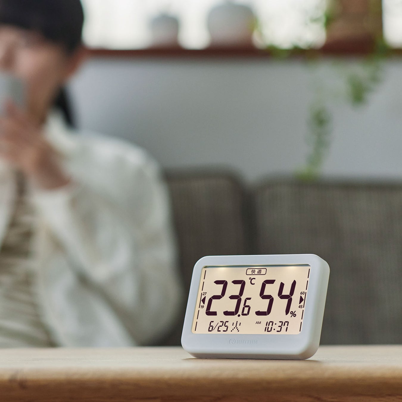 いつでも見やすい、体調管理に役立つくつろぎの温湿度計