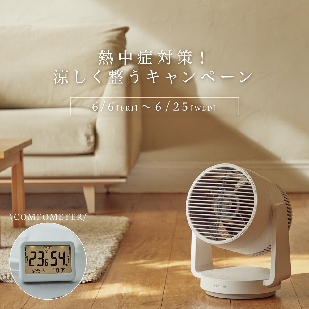 リズム株式会社(取締役社長 湯本武夫)はフォロー&コメントで、大風量のサーキュレーター「Silky Wind Circulator」+こそうじブラシ、高精度温湿度計「COMFOMETER」のセットが当たるSNSキャンペーンを2025年6月6日(金)~6月25日(水)の期間で実施します。