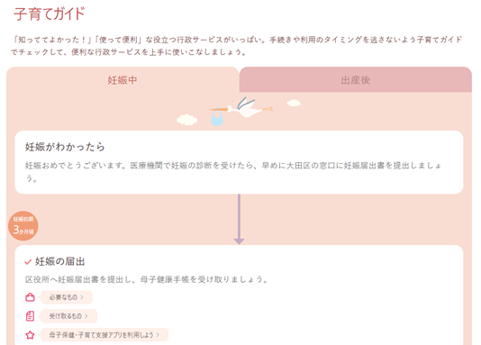 大田区の子育て支援情報を「ユニバーサルメニュー」に基づいて整理し、わかりやすく掲載。