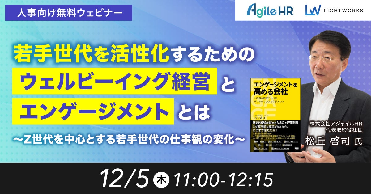 【12/5開催無料ウェビナー】若手世代を活性化するためのウェルビーイング経営とエンゲージメントとは