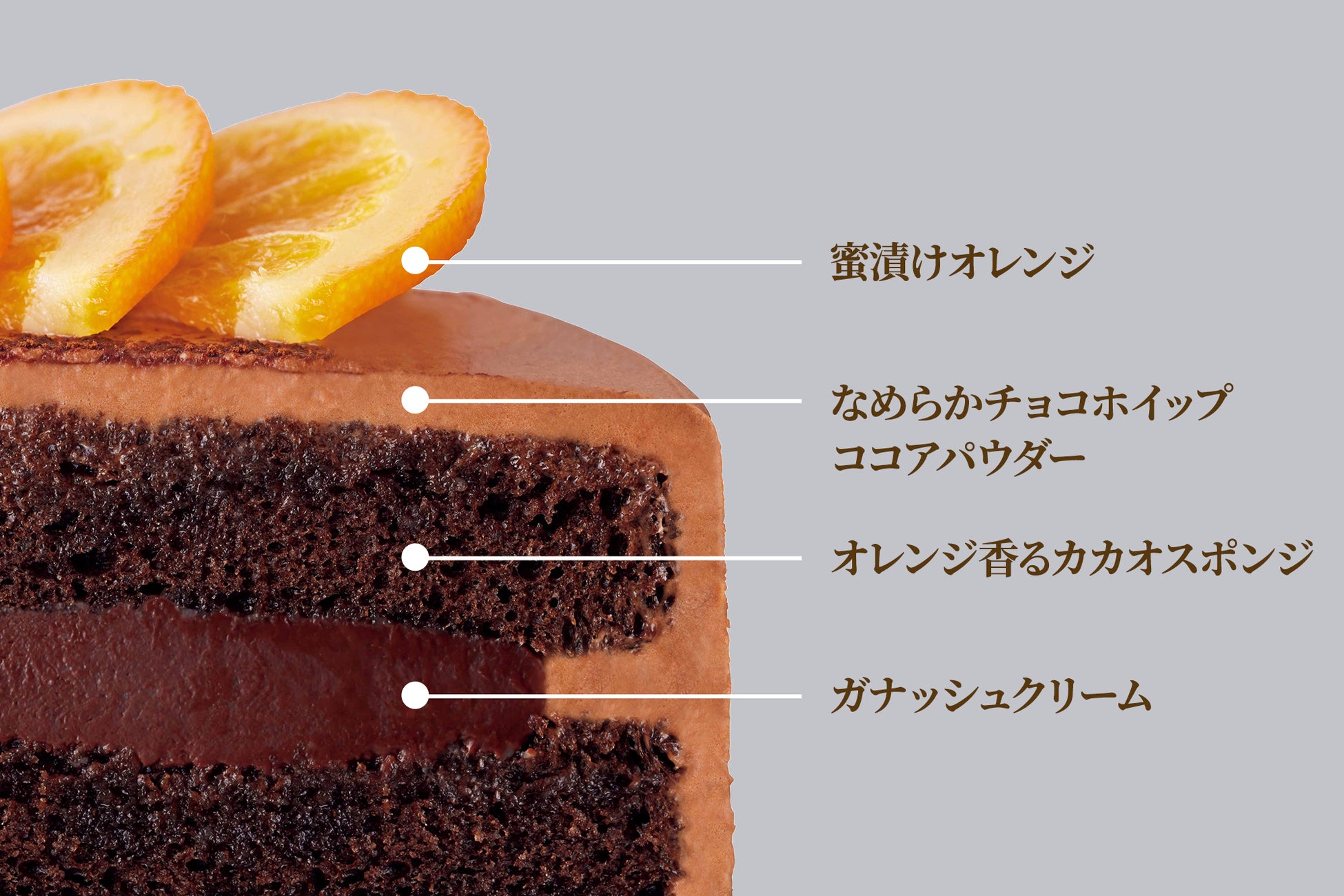 カカオ本来の味わいをベースに、華やかなオレンジをアクセントにあしらったimperfectならではのクリスマスケーキ。ガナッシュ、スポンジ、ホイップそれぞれに上質なカカオ原料を使用し、素材本来のほろ苦さとコクを感じられるおいしさに仕上げました。アクセントとして、カカオと相性のよいオレンジ果汁入りのシロップをスポンジに忍ばせ、上部には蜜漬けオレンジをあしらいました。濃厚なカカオのおいしさに、華やかなオレンジの香りがふんわり広がる大人の方にも満足いただけるクリスマスケーキです。