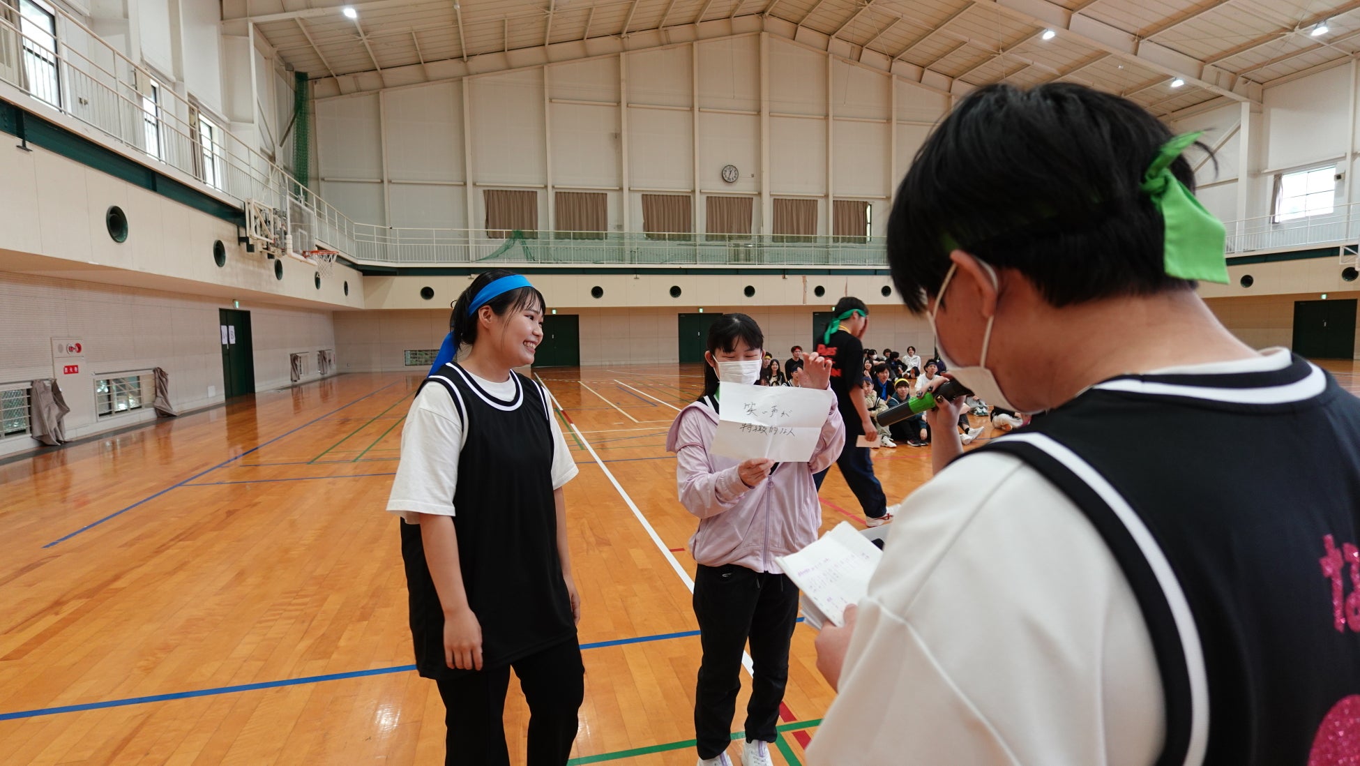 第1部のレクリエーションでは、頭脳戦形式のクイズを行い、ビーチフラッグ形式でボールを取りに走るという知力と体力を組み合わせた競技が展開されました。最も早く正解を出したチームがポイントを獲得するルールで、学生たちはチームで協力しながら盛り上がりを見せました。