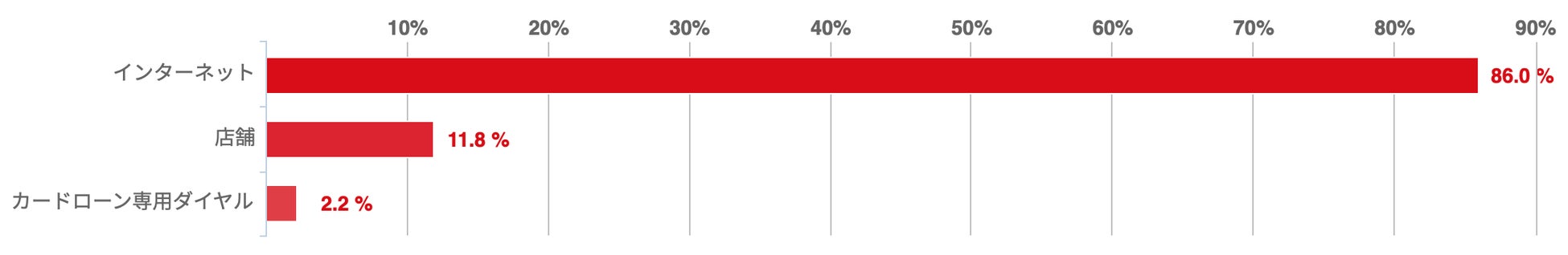 みずほ銀行カードローンへの申し込み方法としては「インターネット」が86.0%で最も多くなった。これは、時間や場所を問わず、気軽に申し込みが可能な点が多くのユーザーから評価されていることを表している。