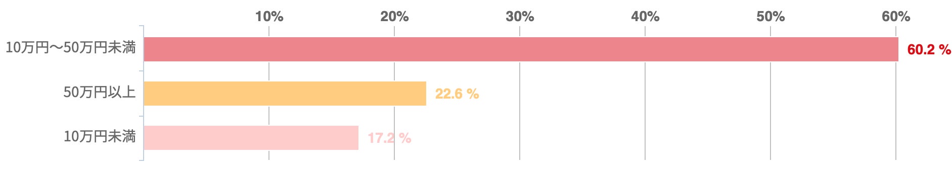 アンケートによれば、みずほ銀行カードローンの借入金額としては、「10万円〜50万円未満」が60.2%で圧倒的多数を占める結果となった。