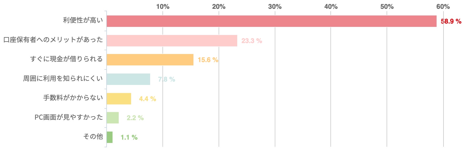 アンケートによれば、それぞれの借入方法を選んだ理由としては「利便性の高さ(58.9%)」が最も多く挙げられた。