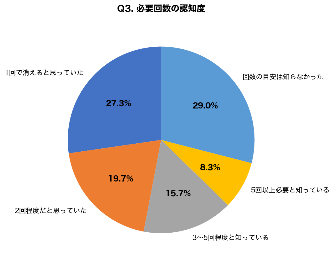 【調査結果】「3〜5回で完了」の認知率は15.7%、1回で消えると思う人が27.3%