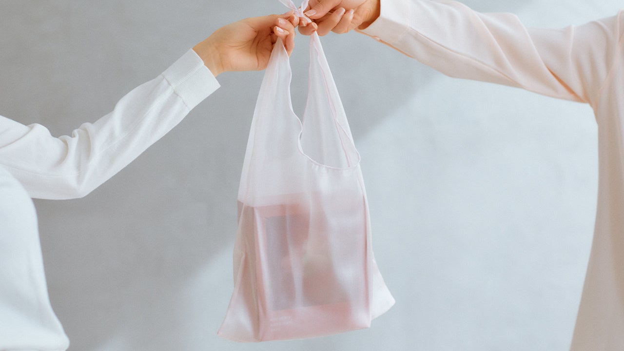 柔らかい素材で中身が少し透ける軽やかなバッグをプレゼントします。