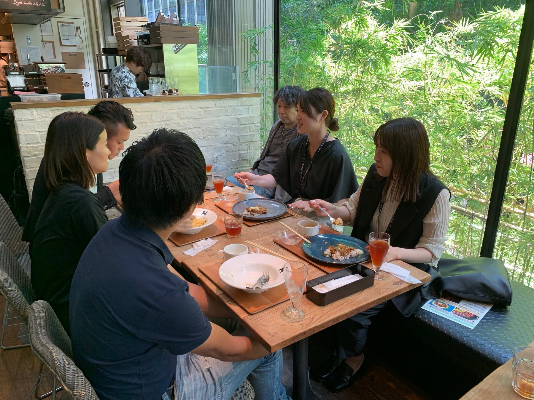 研修の合間には役員×事業部メンバー×新入社員の歓迎ランチも行いました。ランチ会というカジュアルな場で和やかに交流する事で固くならずにフランクに会話する事ができ、新しいメンバーとの距離を縮め、更に理解度が深まりました。
