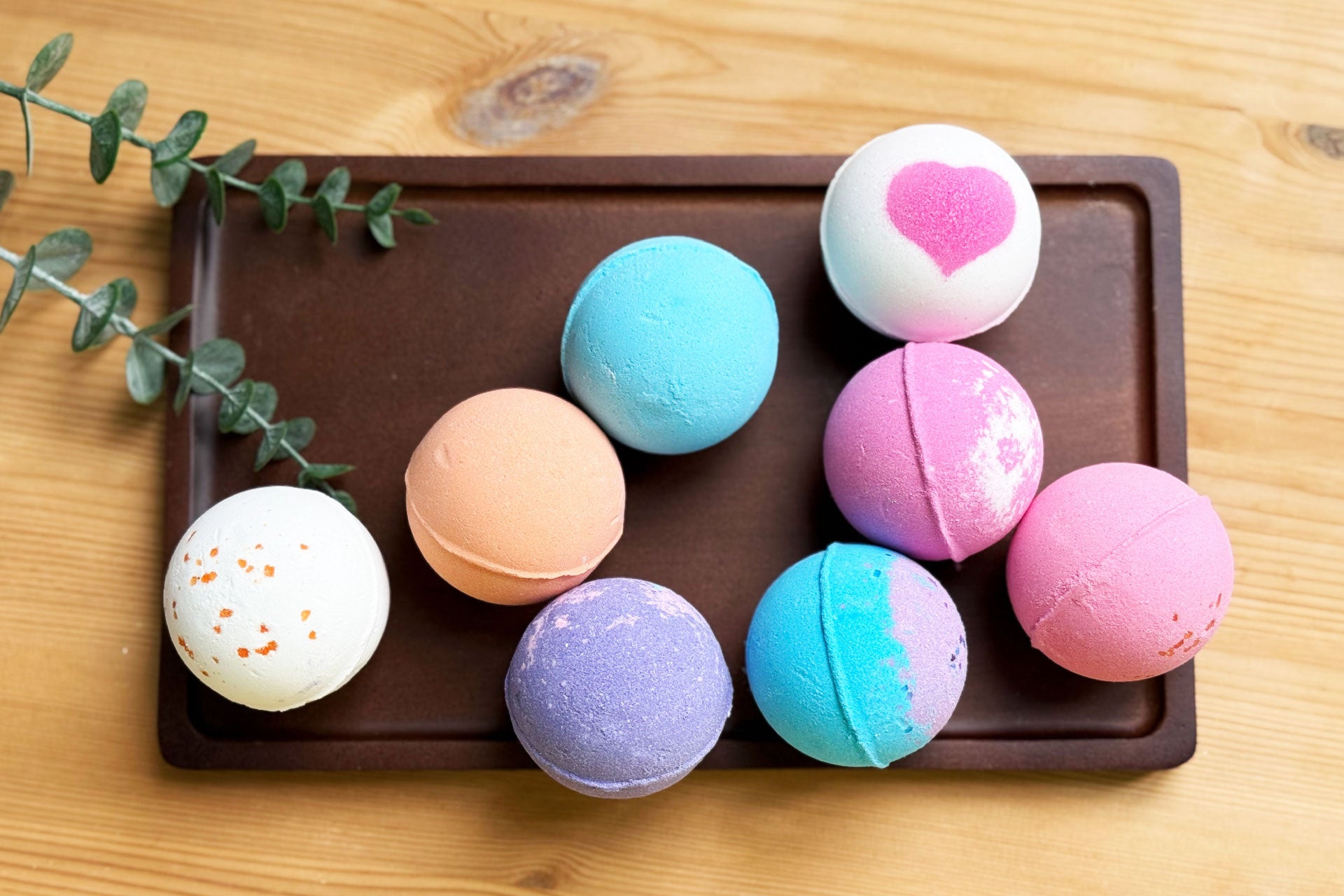 今回のセットには、今までのバスボムシリーズで最も人気のあったフレイバー、フルーツの香りから華やかな薔薇の香りまで、ラベンダー、ローズ、フリージア、オレンジ、スイートジャスミン、ココナッツ、バニラ、グレープフルーツ 計8種類と、特に人気のある香りを厳選しております。日々変わる体調や その日の気分に合わせてお好きな香りを選んで楽しむことができます。