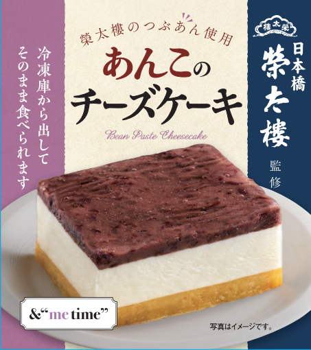 天面にぎっしり敷き詰めた「榮太樓」のつぶあんの優しい甘さと、程よい塩味のチーズクリームを味わうチーズケーキです。底面にはクランブル生地を使用しており、ザクザクとした食感も楽しめます。