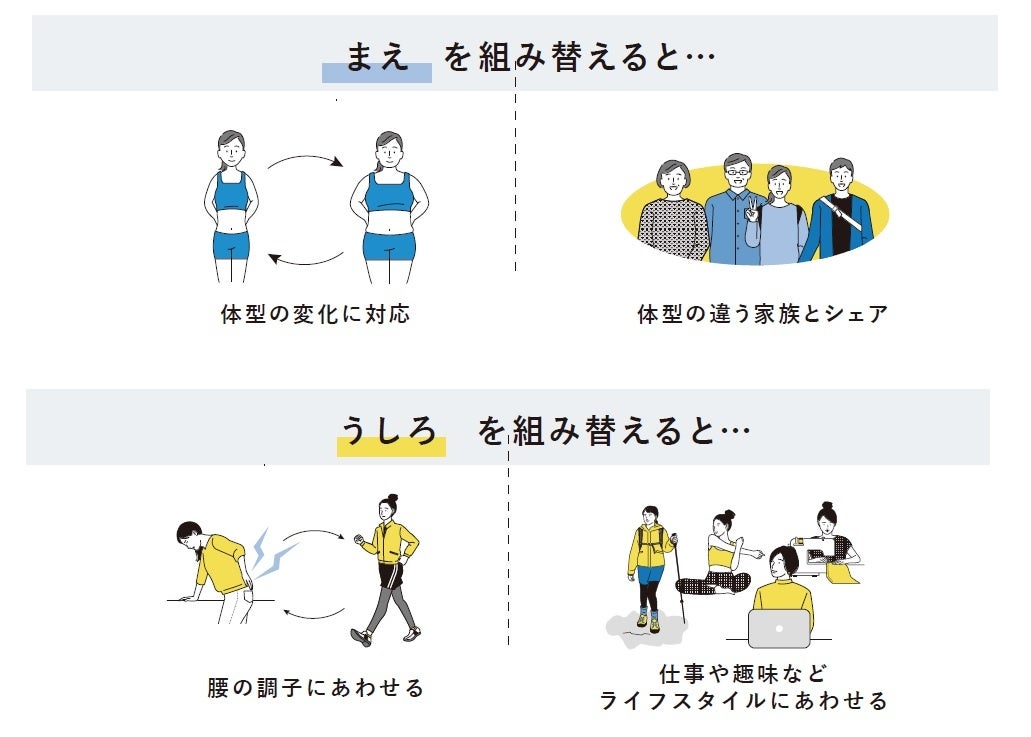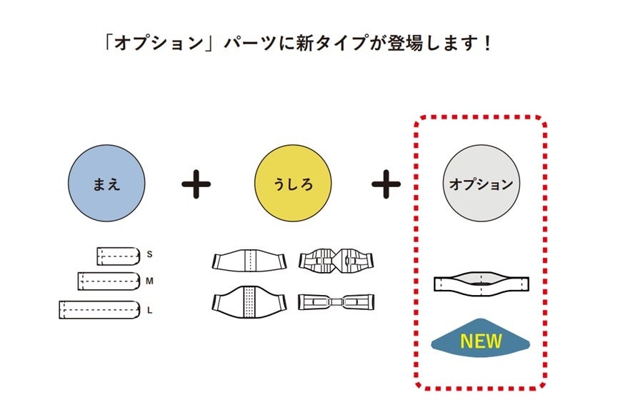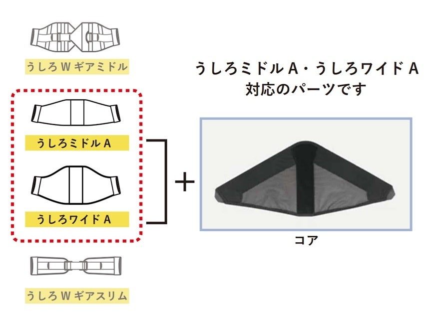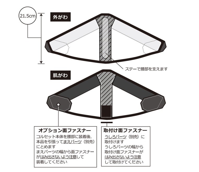 ・別売のまえパーツ、うしろパーツと組み合わせることで体の状態に合わせた腰部サポート用コルセットとして使用可能