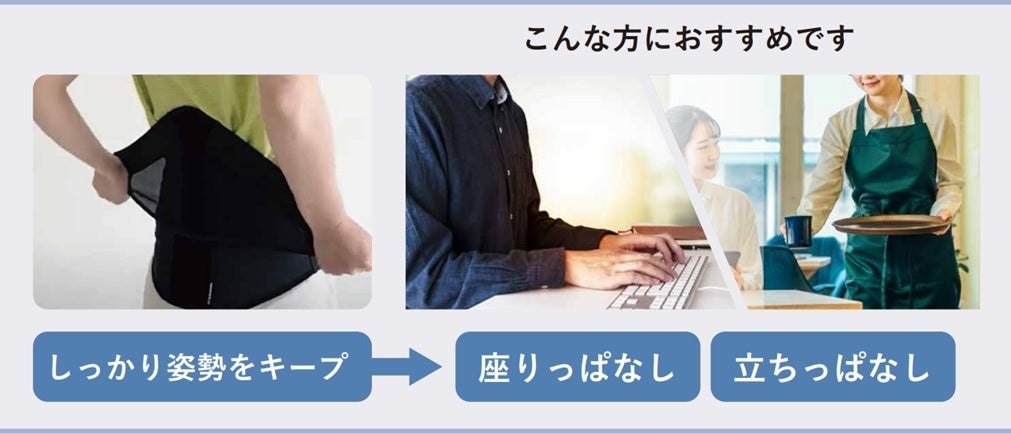 ・筋力低下により、下垂した下腹部を引き上げる力が働き、姿勢をキープしやすくできる