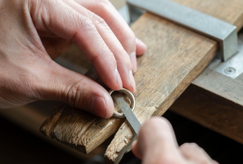 「日常生活で曲がってしまった指輪やジュエリーの変形直しも、熟練の職人が一つひとつ丁寧に対応しています。“大切な指輪が元通りになって嬉しい”というお声を多数いただき、思い入れのある品を再び安心してご使用いただけるよう努めています。変形直しと同時に新品仕上げや補強加工もご提案し、お客様の大切なジュエリーを“これからも長く美しく使える”ようトータルメンテナンスの観点からサポートしています。」