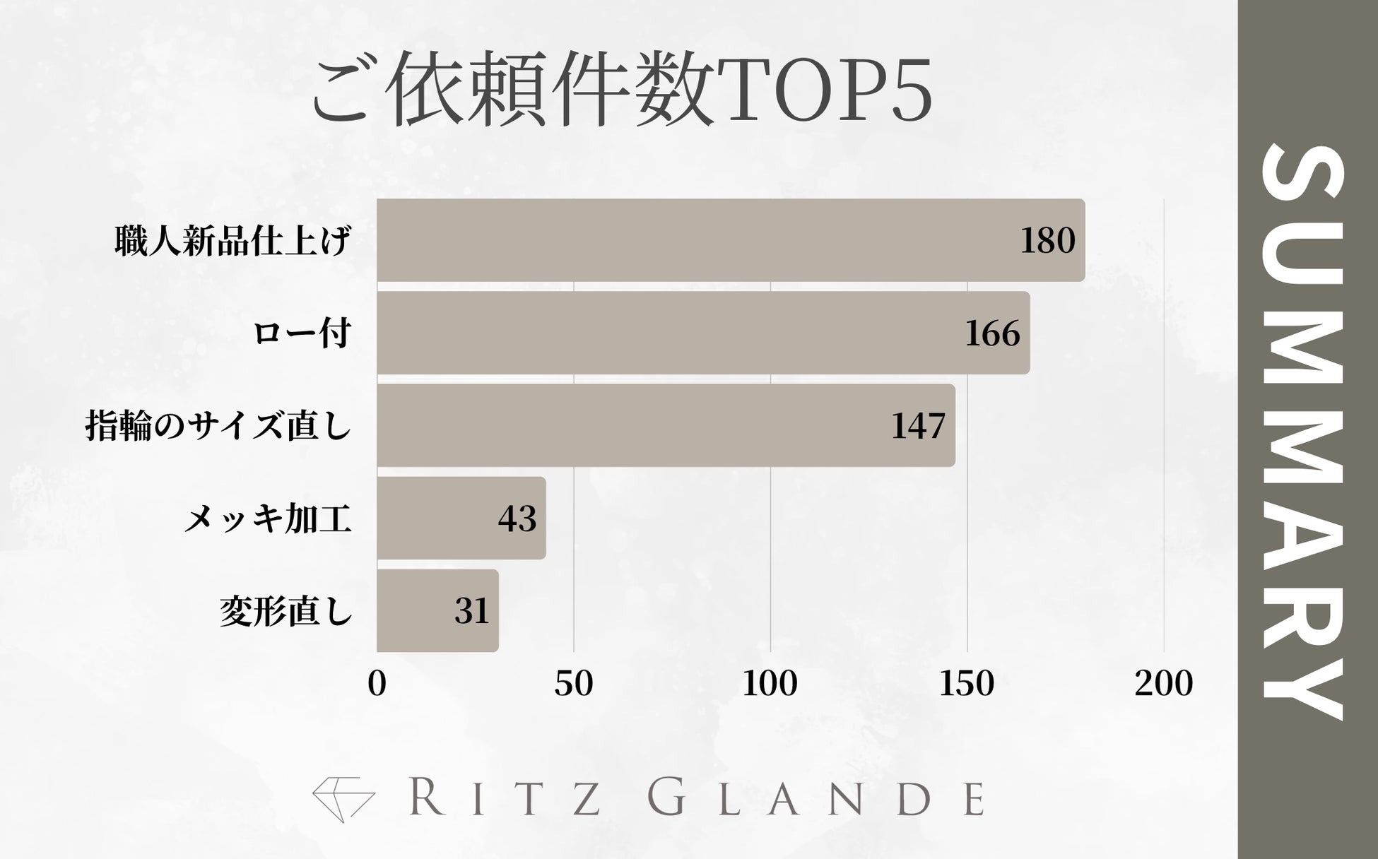 北海道・札幌のジュエリー修理/リフォーム専門店『RITZ GLANDE-リッツグランデ-』では、2025年上半期(1月~6月)にご依頼いただいた修理・リフォームサービスの集計結果を発表いたします。