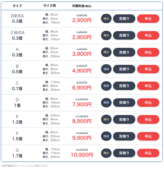 荷物以上に大きな部屋を借りてしまうことや、狭すぎて荷物が入らなかったなんていうトラブルを回避できます。