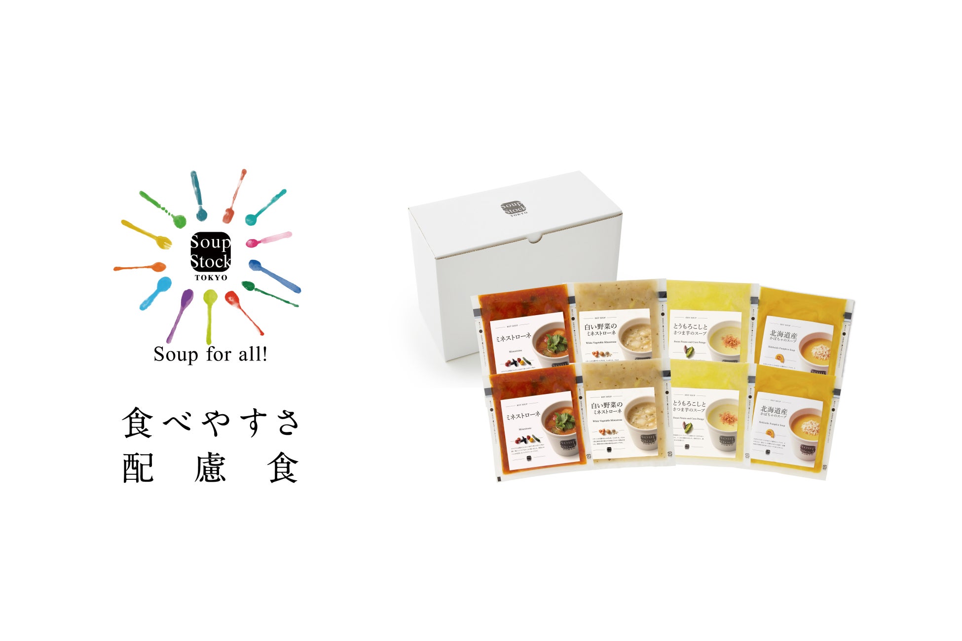 株式会社スープストックトーキョー(本社所在地:東京都目黒区、取締役社長: 工藤萌)は、2024年12月18日 よりSoup Stock Tokyo公式オンラインショップにて、「食べやすさ配慮食」の販売を開始します。「食べやすさ配慮食」は、年齢を重ねた方、障がいがある方、歯の治療中でかたいものを食べられない方など、さまざまな理由で「食べる力」に不安がある方に寄り添う食事です。あらゆる方が一緒に一つの食卓を囲み「おいしい」を分かち合えるように、という想いを込めました。食材を柔らかくなるまで煮込むという「スープ」が持っている個性を活かし、食材のかたさ・なめらかさの観点から、食べやすさを基準に選んだ商品をご用意します。ご家族・ご友人で同じスープを一緒にお楽しみいただけます。