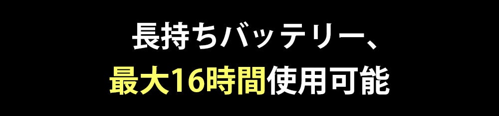 1200mAhの大容量バッテリーと高速、省エネのブラシレスモーターを採用し、フル充電で最大16時間の使用が可能。