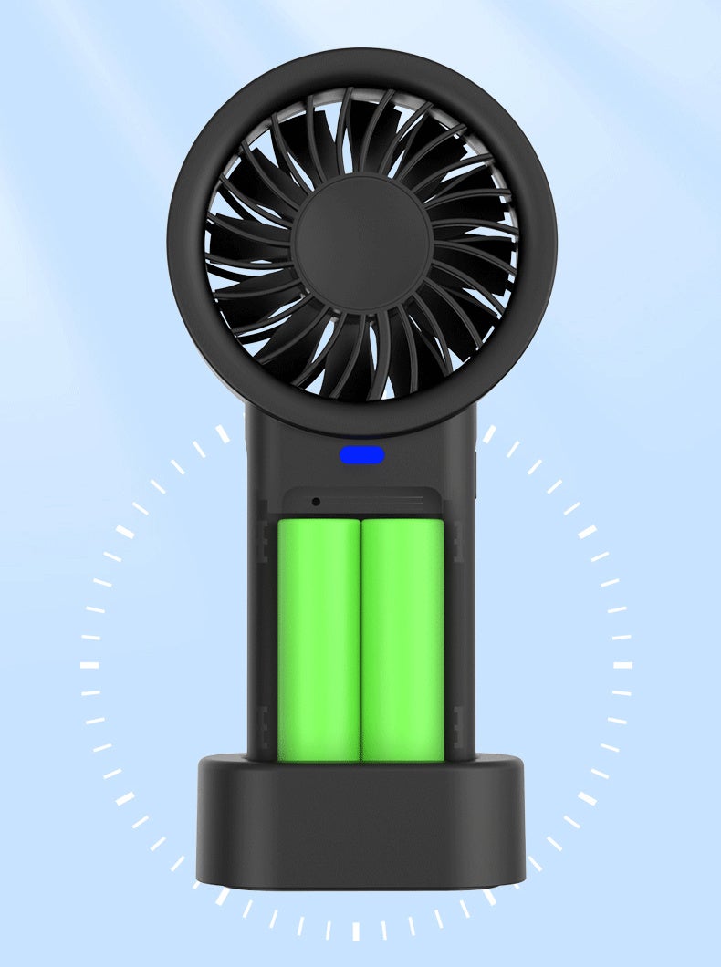 軽量でコンパクトなデザインで、手持ちでの使用はもちろん、専用スタンドで卓上扇風機としても活躍。