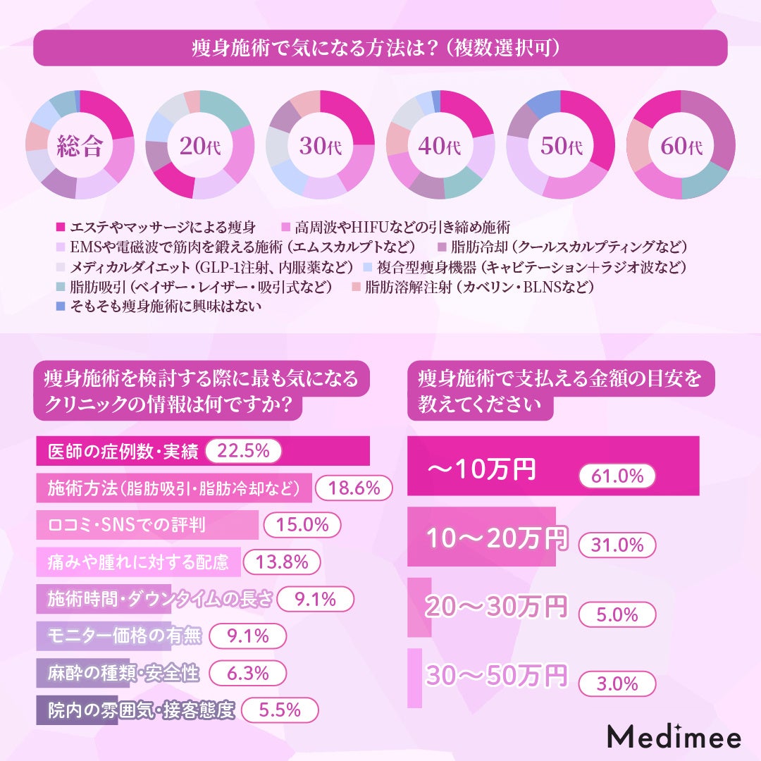 このように、痩身施術に対するニーズは年齢やライフスタイルによって異なりつつも、無理なく続けられる方法や個々の目的に合った選択肢が求められていることが明らかとなりました。