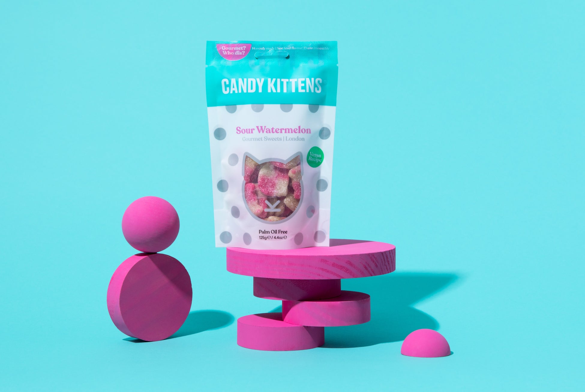 「キャンディキトン」は、英国のリアリティ番組「Made in Chelsea メイド・イン・チェルシー」のスターであるジェイミー・ラングと共同創設者であるエド・ウィリアムズが2012年にロンドンで設立したグルメなグミブランド。動物のゼラチンやパーム油などを使用しない、ナチュラルで環境に優しい素材を使った大人向けのグミを展開しています。ブランドのロゴにも使用されているチャーミングなネコの形のグミが人気を博し、現在ではイギリスの高級百貨店「セルフリッジズ」や王室御用達の高級スーパー「ウェイトローズ」をはじめ、アメリカやオーストラリアなど世界15ヵ国以上でも販売されるブランドへ成長しました。