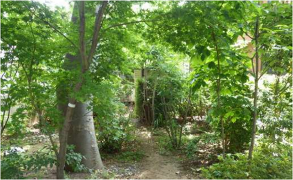 ミサワホームは東京都内に本社、支社を有する企業として、「東京グリーンビズ」の取り組みに賛同し、緑豊かな都市形成に寄与する活動を続けています。2018年には、東京都杉並区にある住まいづくりの体験型施設「ミサワパーク東京」が「江戸のみどり登録緑地」※1の優良緑地に登録されました。住宅地の庭を通じて植物や生きものの大切さやつながりを体感できるデザイン手法「GDD(グリーン・ドット・デザイン)」を採用し、地域の植生との連続性や生物多様性に配慮したエクステリア設計を行いました。「GDD」はミサワホームが手がけるさまざまな住宅地でも採用しており、住宅地や庭の緑が周辺の緑とつながることで、より広範囲での生物多様性保全や質の向上に寄与しています。