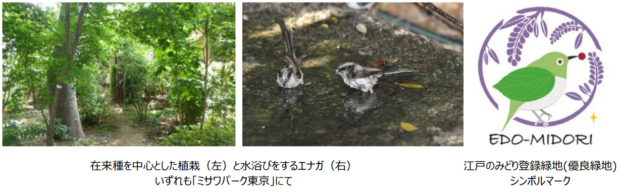 ※1:「江戸のみどり登録緑地」は、東京都が在来種を積極的に植栽している民間建築物等の敷地内の緑地を登録・公表することで、東京の生物多様性保全に寄与する在来種植栽を普及拡大することを目的に実施されています。
