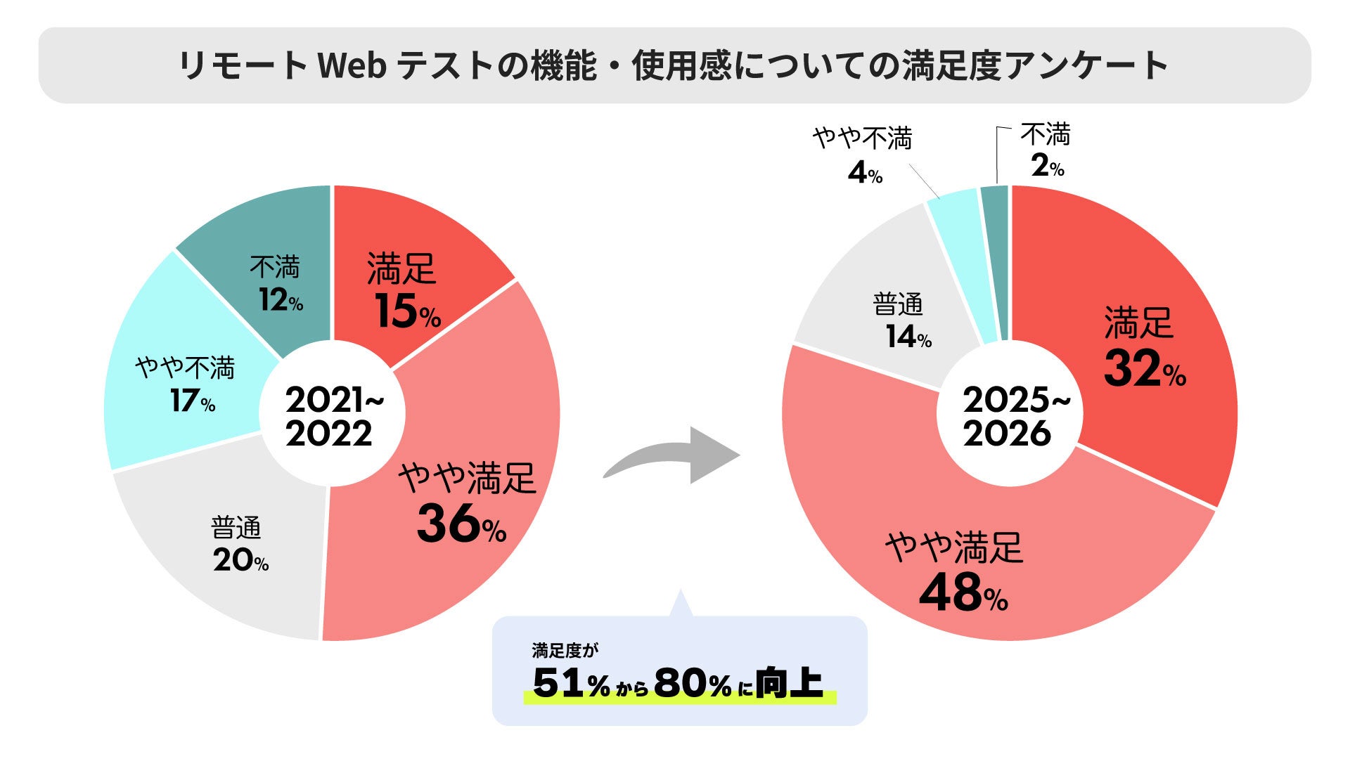 オンライン試験の受験者満足度が51%→80%に上昇、75%が再受験意向も