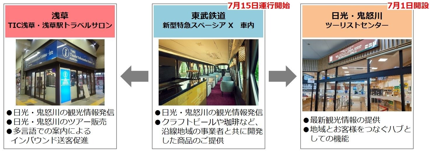 当社が浅草駅で運営する「東武ツーリストインフォメーションセンター浅草(TIC浅草)」及び「浅草駅トラベルサロン」と併せた発着地一体運営によるサービスの向上や、日光・鬼怒川エリア着地型旅行商品の開発及び販売を行うことによる地域との関係強化及び同エリアへの誘客促進を目的としています。
