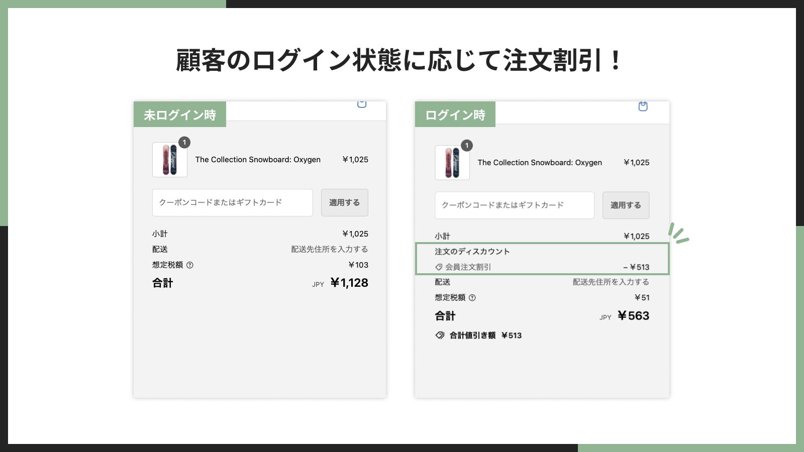 ■顧客のログイン状態に応じた注文割引を簡単に実現!