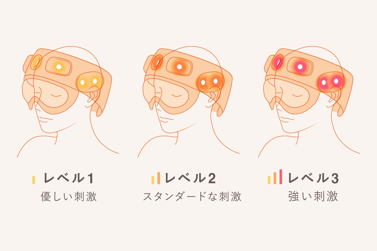 レベル1〜レベル3までその日の気分に合わせて、自由に刺激の強さを調節できます。