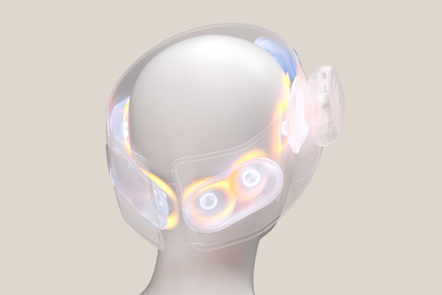 頭まわりを囲む6つのエアバッグがおでこから後頭部までしっかり加圧。