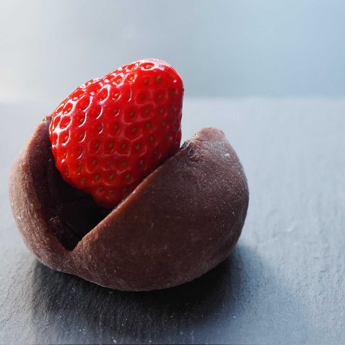 大粒の紅ほっぺとなめらかで濃厚な生チョコをふわふわの自家製チョコ餅で包み大粒の新鮮いちごをまるごと1つ。チョコといちごが絶妙な美味しさです。