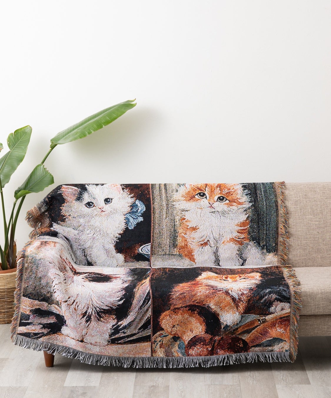 愛くるしい猫たちがジャガード織で表現された大判スローケットの新デザインが登場。